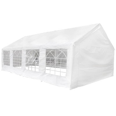 vidaXL White Party Marquee - Easy to Assemble, Steel Frame & PE Material, UV Protective & Water Resistant, with Decorative Wall Panels & Windows