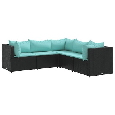 vidaXL Patio Lounge Set with Cushions Sectional Sofa Garden Backyard Poly Rattan - Black