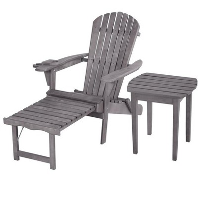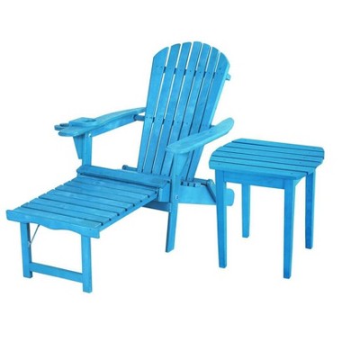 Jiallo Oceanic Collection Adirondack Chaise Lounge Chair Foldable, cup and glass holder, built in ottoman, Set of 1 Lounge chair and 1 end table