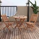 Emma and Oliver Outdoor Patio Bistro Dining Table Set with 2 Chairs and Faux Teak Poly Slats