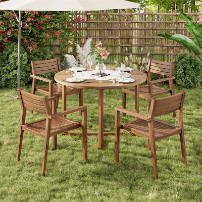 ELJGET 5-Piece Acacia Wood Outdoor Dining Set, 47.2" Round Table & 4 Chairs for Patio, Garden, Backyard