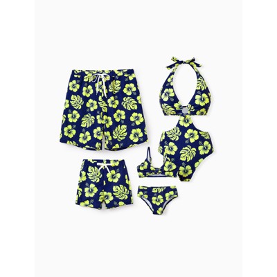 PATPAT Matching Family Swimwear Floral Print Bikini & Swim Trunks Set for Mom, Dad, & Kids