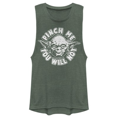 Juniors Womens Star Wars St. Patrick's Day Yoda Pinch Me Not Festival Muscle Tee