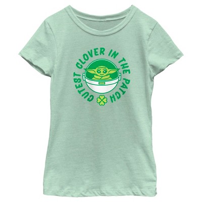 Girl's Star Wars: The Mandalorian St. Patrick's Day Grogu Cutest Clover in the Patch T-Shirt
