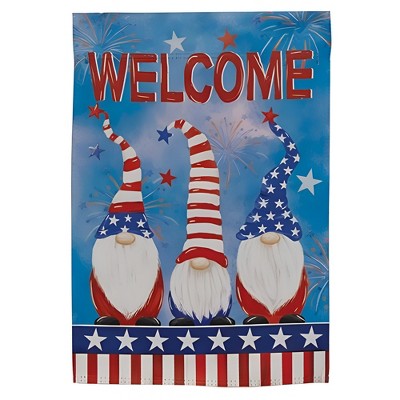 Slickblue "Welcome" Patriotic Gnome Flag – 18" x 12.5", Stars & Stripes Design, Fireworks, UV-Resistant Polyester