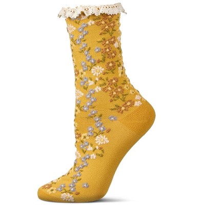 Memoi Women's Liberty Floral Lace Cuff Crew Socks
