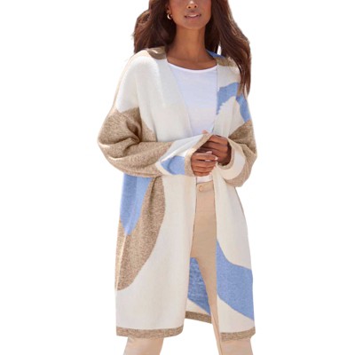Amaryllis Women's Colorblock Stripe V-Neck Button-Down Cardigan Long Sleeves Oversized Knit