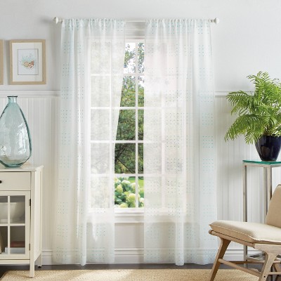 Set of 2 95"x37" Montauk Clip Sheer Curtain Panels Green - Martha Stewart: Modern Polyester Rod Pocket