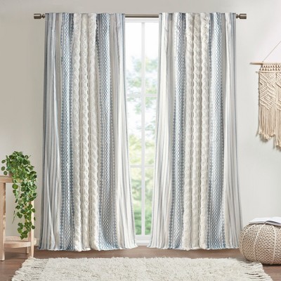Boho Style Printed Strip Tassle Trim Chic Window Curtain, Lightweight Cotton Lining Curtain for All Decor Styles