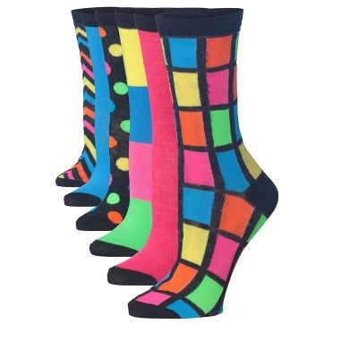 Tipi Toe Women's Geometric Shapes Stripes Colorful Patterned Crew Socks - 6 Pack