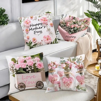Lomsoe 4pcs Mother'S Day Pillowcase with Elegant Pattern of Purple Love Roses, Suitable As a Gift for Your Most Loving Mother, 18x18.