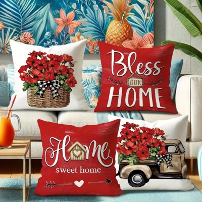 Lomsoe 4pcs Stylish Decorative Pillow Covers with Red And White Floral Patterns, Suitable for Sofas, Living Rooms, Outdoor Use, 18x18inch