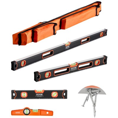 VEVOR 6-Piece Torpedo Level, 78/48/32/24/16/10 Inch Box Levels Set, Bubble Vials Ruler for 45/90/180 Degree, Black+Orange
