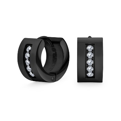 Bling Jewelry Channel Set CZ Huggies Mini Hoop Earrings Row Gold or Black Stainless Steel
