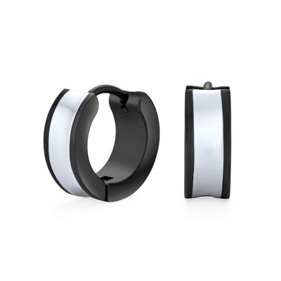 Bling Jewelry Unisex Two Tone Striped Black Enamel Huggies Mini Hoop Earrings Stainless Steel