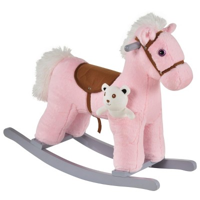 SEVOBAL Toy Vehicles Plush Ride On Rocking Pony with Realistic Sounds for Kids Fun and Development, Pink, 30.75"*11"*26.75"