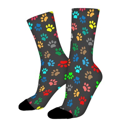 Colorful Paw Print Women Printed Crew Socks Funny Funky Socks Soft Polyester Novelty Gifts for Artists Men