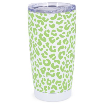 Elanze Designs 20 oz Stainless Steel On the Go Insulated Travel Tumbler With Push Top Lid, Lime Green Cheetah Leopard Print White