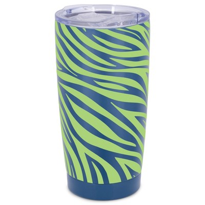 Elanze Designs 20 oz Stainless Steel On the Go Insulated Travel Tumbler With Push Top Lid, Lime Green Zebra Print Blue