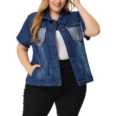 Agnes Orinda Women's Plus Size Washed Ripped Distressed Cropped Frayed Jean Jackets