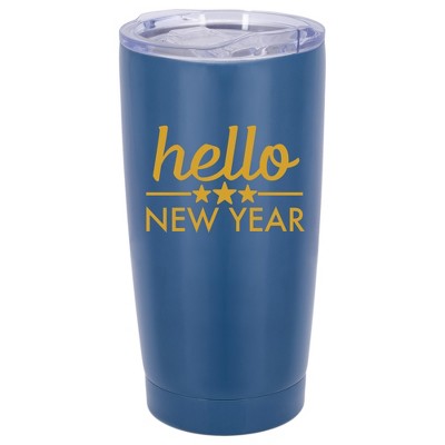 100 North 20 Ounce Stainless Steel On the Go Travel Tumbler With Push Top Lid, Hello New Year Black