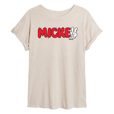 Women's - Disney - Mickey Red Hand Peace Sign Oversized Graphic T-Shirt