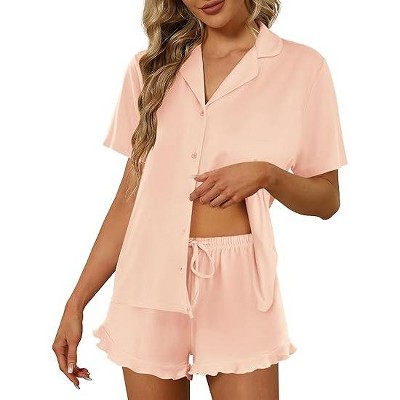 Ekouaer Pajamas for Women Set Button Up Pjs Short Sleeve Ruffle Sleepwear Notch Collar Bride Soft Pj Lounge Sets
