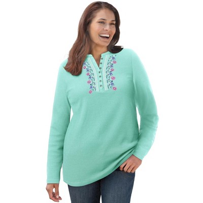 Roaman's Plus Size Soft Knit Tunic With Notch Neckline