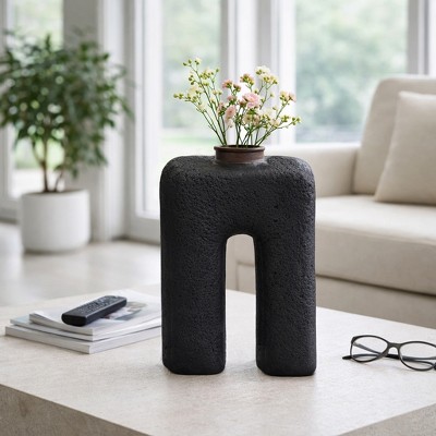 SEVOBAL Decorative Vases - Rustic Aluminum Table Vase with Textured Design for Modern Home and Table Decor, Black, 6"*6"*8.6"
