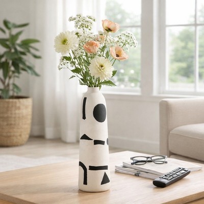 White and Blue Ceramic Vase 11 Inch Modern Decorative Vase for Tabletop Displays By Melrose