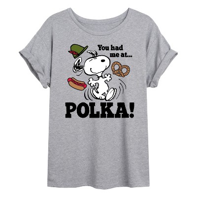 Women's - Peanuts - Records Dancing Snoopy Oversized Graphic T-Shirt