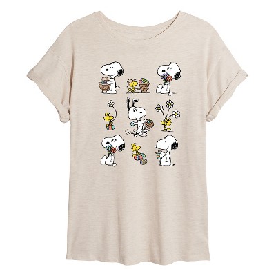 Women's - Peanuts - Snoopy & Woodstock Easter Grid Oversized Graphic T-Shirt