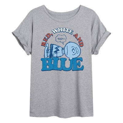 Women's - Peanuts - Red White and Blue Charlie Brown Oversized Graphic T-Shirt