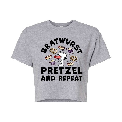 Women's - Peanuts - Bratwurst Pretzel And Repeat Snoopy Cropped Graphic T-Shirt