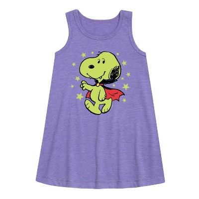 Girls' - Peanuts - Snoopy Vampire Stars Art Graphic Sleeveless Aline Dress