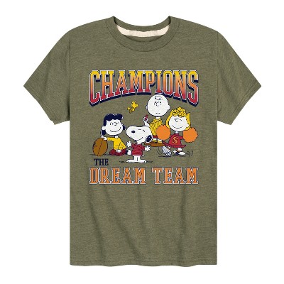 Boys' - Peanuts - Snoopy Charlie Lucy Sally Football Champions Short Sleeve Graphic T-Shirt