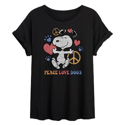 Women's - Peanuts - Peace Love Dogs Oversized Graphic T-Shirt