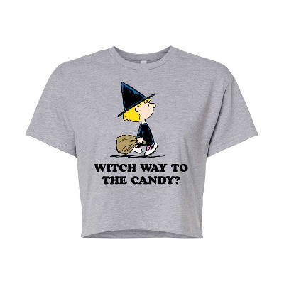 Women's - Peanuts - Witch Way To The Candy Cropped Graphic T-Shirt