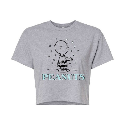Women's - Peanuts - Charlie Snow Cropped Graphic T-Shirt