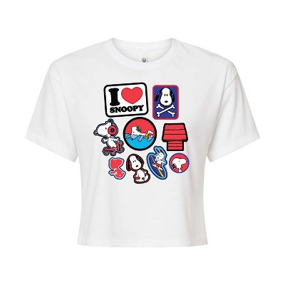 Women's - Peanuts - I Heart Snoopy Patches Cropped Graphic T-Shirt