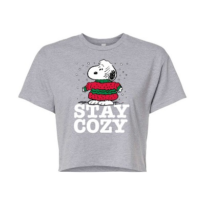 Women's - Peanuts - Stay Cozy Cropped Graphic T-Shirt