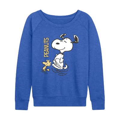 Women's - Peanuts - Snoopy Dance Lightweight French Terry Wide Neck Long Sleeve Graphic Shirt