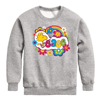 Boys' - Peanuts - Peace Floral & Colorful Woodstock Graphic Long Sleeve Fleece Sweatshirt