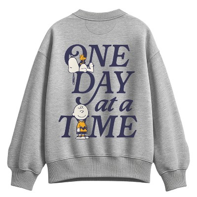Women's - Peanuts - One Day At Time Oversized Fleece Crew Sweatshirt