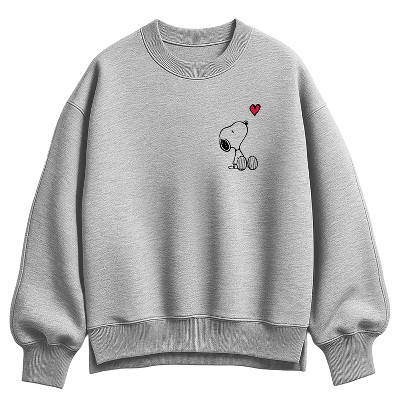 Women's - Peanuts - Mini Valentine Snoopy Heart Oversized Fleece Crew Sweatshirt