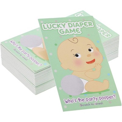 Paper Junkie 60-Count Baby Shower Games, Scratch Off Game Cards, Lucky Diaper Lottery Raffle Party Supplies for Boys or Girls, Green