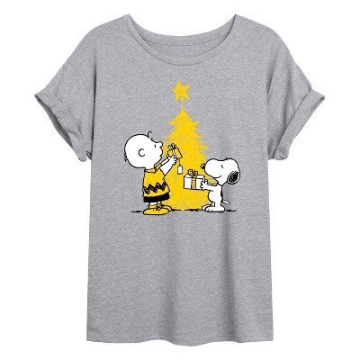 Women's - Peanuts - Christmas Tree Snoopy and Charlie Oversized Graphic T-Shirt