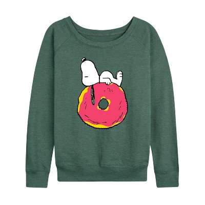 Women's - Peanuts - Snoopy Donut Lightweight French Terry Wide Neck Long Sleeve Graphic Shirt
