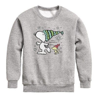 Boys' - Peanuts - Snoopy & Woodstock Chasing Snowflakes Christmas Graphic Long Sleeve Fleece Sweatshirt
