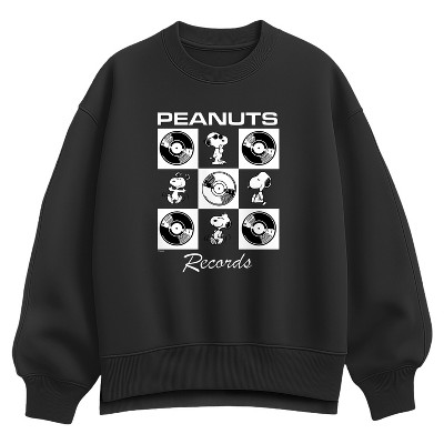 Women's - Peanuts - Snoopy Vinyl Grid Oversized Fleece Crew Sweatshirt